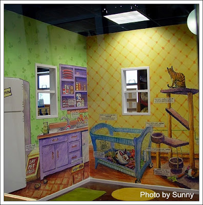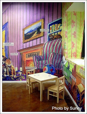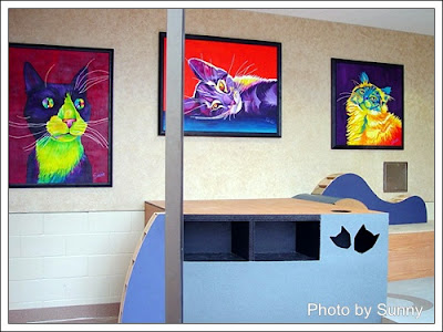 貓咪的公共展示區,牆上有很多貓咪的藝術品